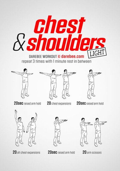 You will need two dumbbells to perform this exercise. Stand upright and holding a dumbbell in each hand with thumbs pointing down. While keeping your elbows straight, slowly bring your arms outward to form a 45-degree angle. Hold this position for five seconds and slowly return to the starting position. Perform three sets of 20 repetitions, once daily to strengthen the muscles and tendons in the rotator cuff to help stabilize the shoulders and restore mobility.